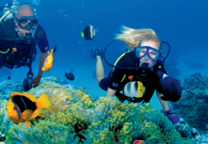 Dive Into Paradise with Paul Gauguin Cruises! Glide through crystal-clear lagoons, swim with sea turtles, and explore vibrant coral reefs, all right from the m/s Paul Gauguin’s onboard watersports marina.